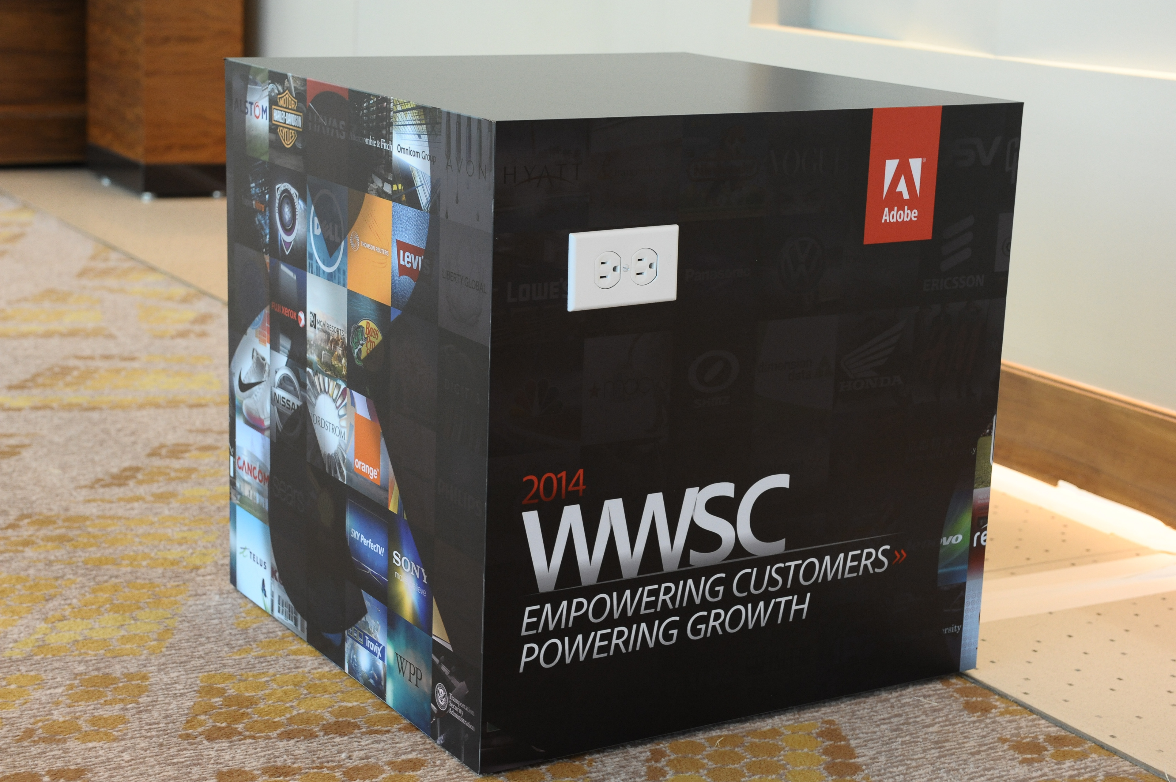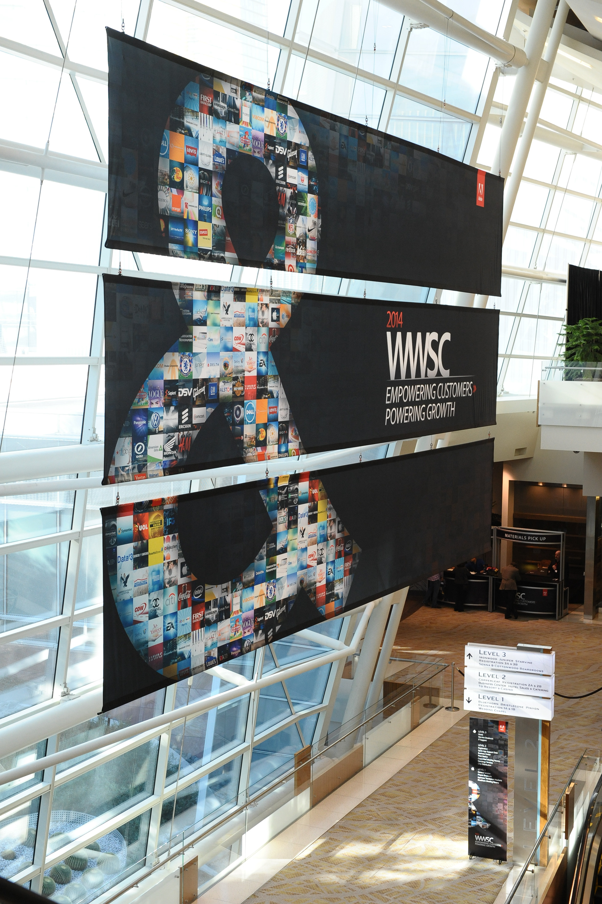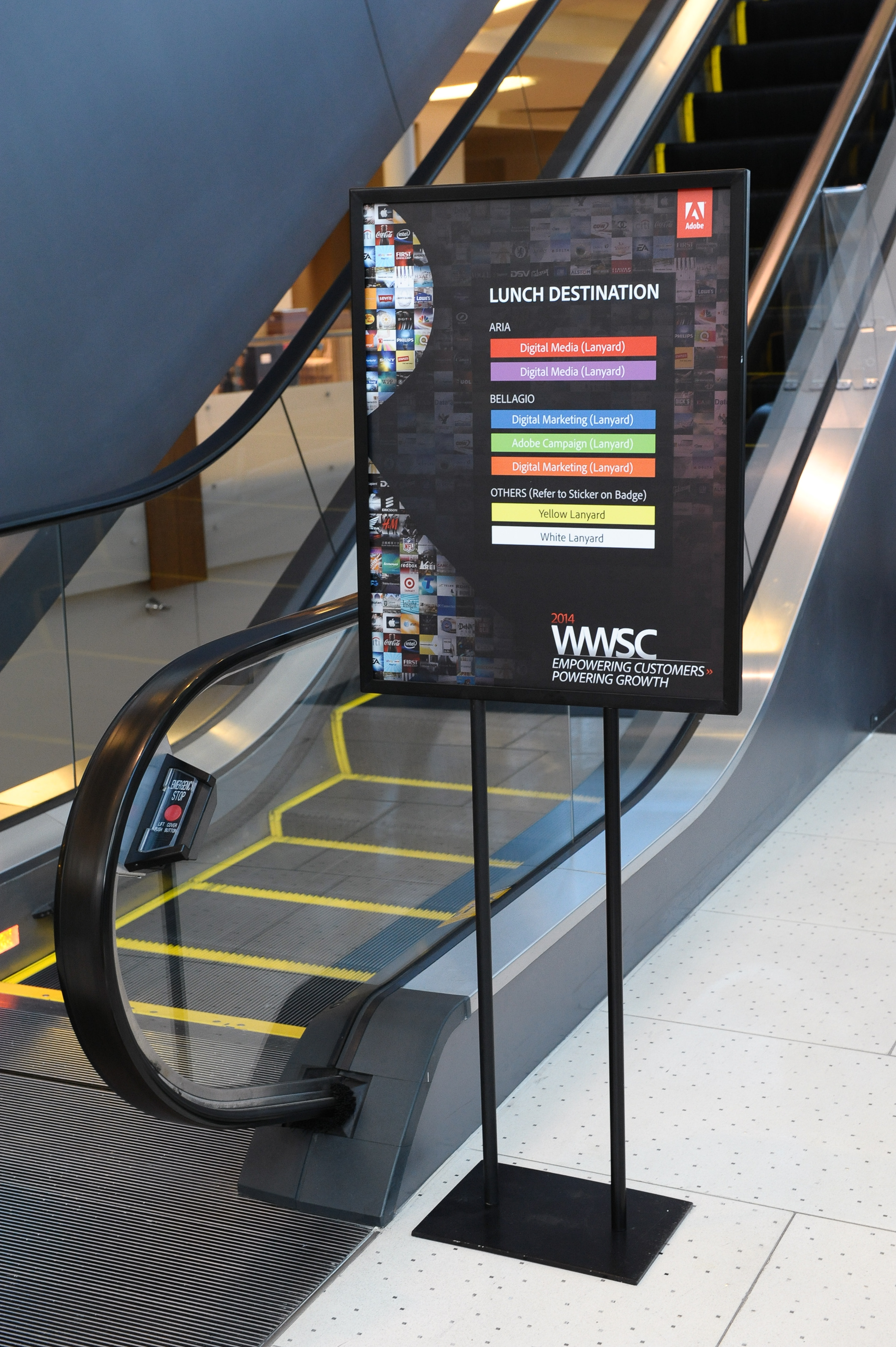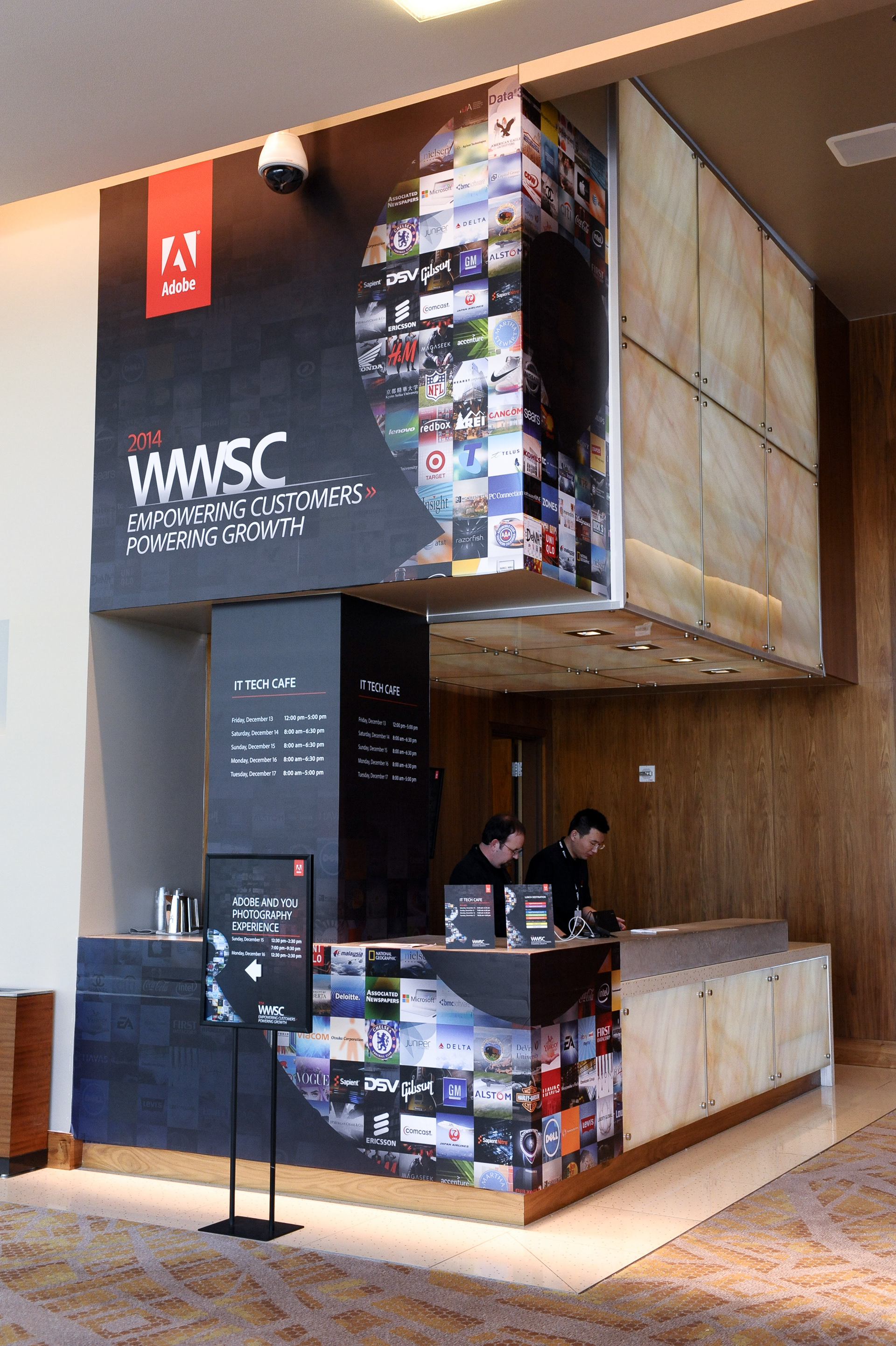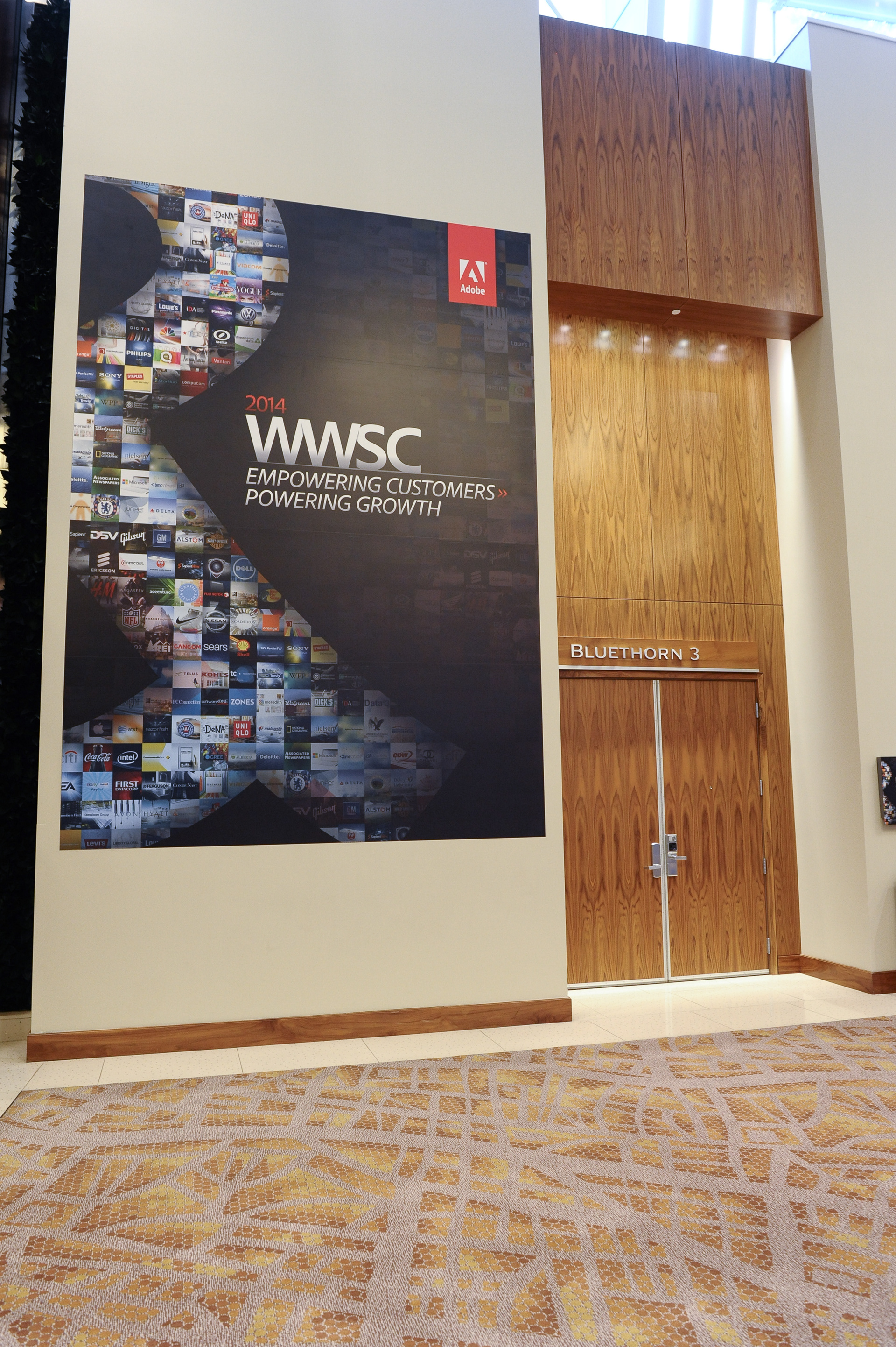 Larissa powered through designing environmental graphics for Adobe’s 2014 WWSC at the Aria Hotel and Casino in Las Vegas. The theme art was already established before she joined the project. The task was to apply the look and feel of the existing theme art to a multitude of event signage both inside and outside of the conference space. She, along with another designer, utilized different materials, layouts and printing methods for elevator doors, overhead banners, glass walkways, directional signage, backdrops and more.