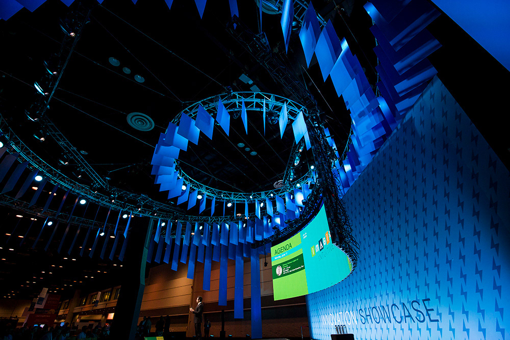 Kern & Crop has been involved in designing elements for this event since 2017. This event hosts 30K+ attendees and is a world-renowned annual customer and partner conference. Larissa took on a larger role in 2018 creating the templates for all screen presentations and graphics for various spaces such as the General Session, Innovation Showcase, CEO presentations, Breakout Sessions and the Big Ideas Theater. She also designed the print graphics for these spaces using the theme artwork assets created by another agency. Video storyboards were created by Larissa for the general session opening video. She was onsite to support any graphic change requirements.