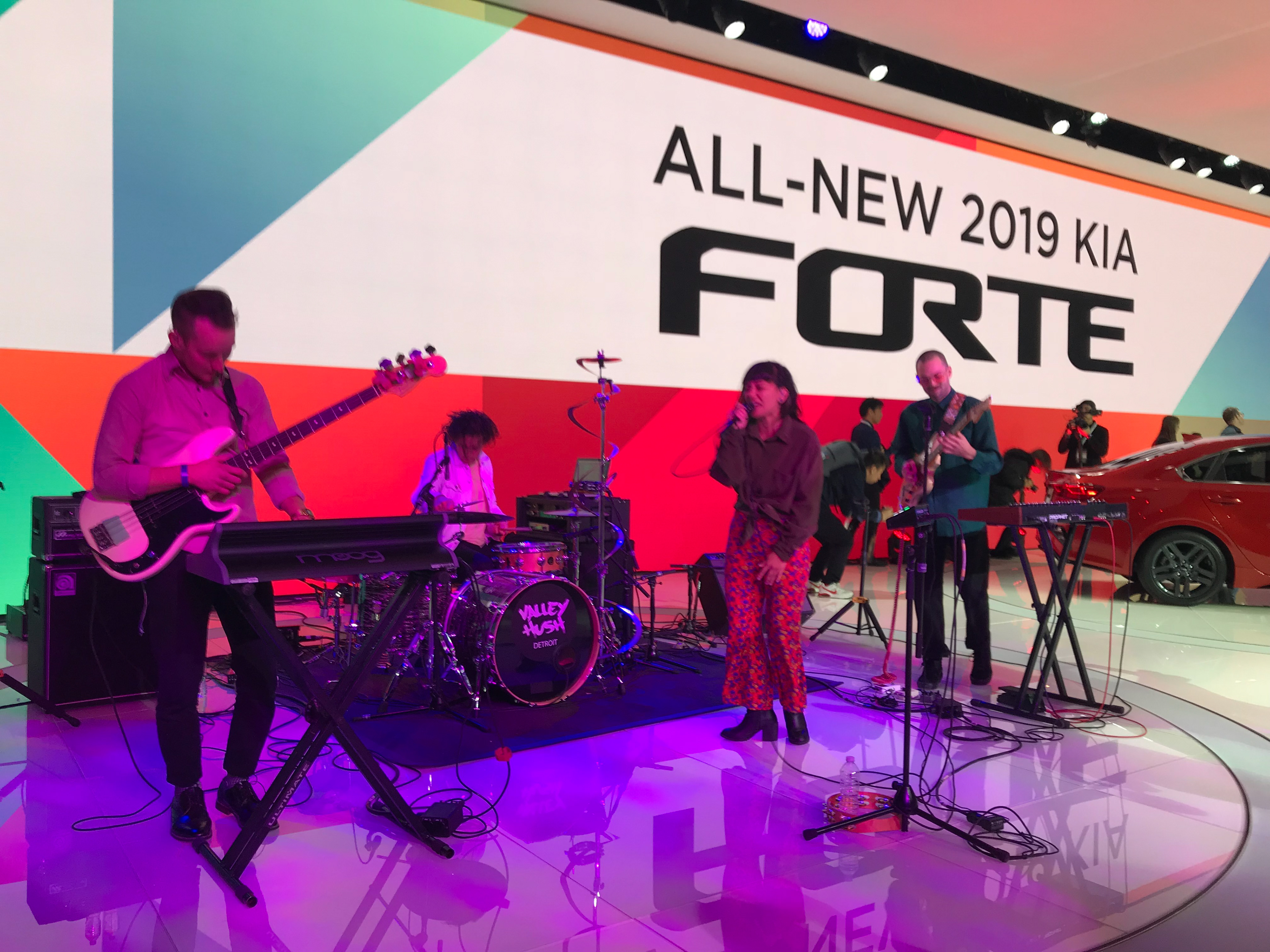 Kern & Crop has been involved with creating the screen and print graphics for the Kia Press Events since 2014. The press event in Detroit for the all new Kia Forte is an example of a lively and playful theme. The graphics were created to reflect the youthful, energetic target market for the Forte vehicle. The geometric patterns and colors allowed for a dynamic display of animations as the slides transitioned and transformed to accommodate the content being presented. A live band performed pre/post show and during the vehicle reveal. Larissa was onsite for all Kia Auto Shows and Dealer Meetings and was client facing.